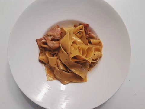 달걀과 치즈로 꾸덕꾸덕한 소스에 면이 두꺼워서 씹는맛이 좋아요