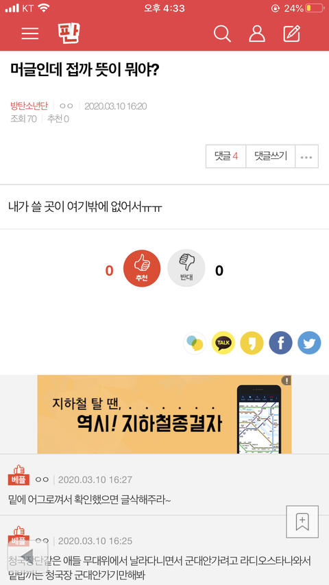 밑밑 머글인데 접까 글,댓 여기서봐