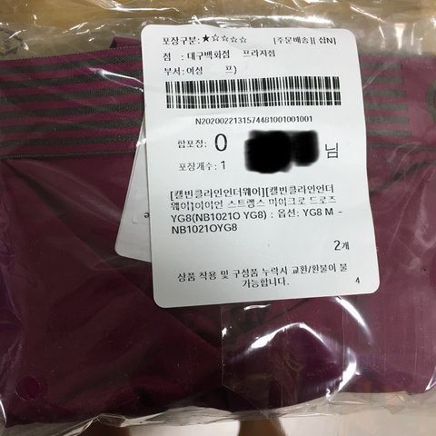대구에 있는 백화점 매장에서 인터넷 구매 품목입니다