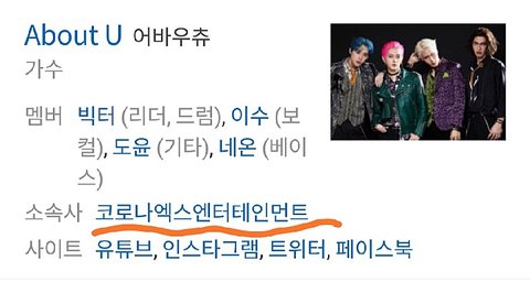 코로나X 라는 범상치 않은 이름의 소속사에 어바우츄라는 신인 아이돌이 있음