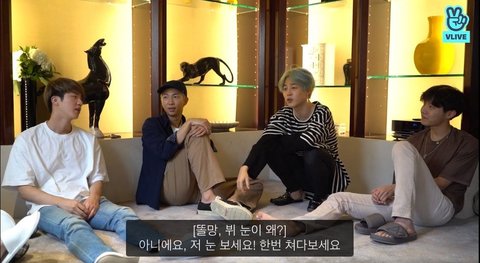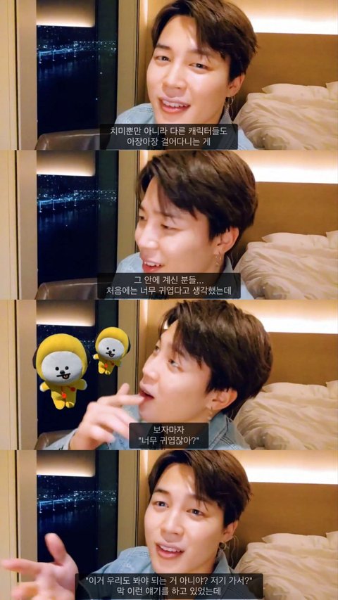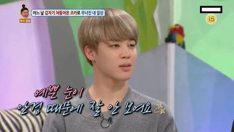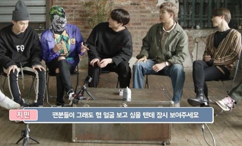 지민 : 형, 팬분들이 그래도 형 얼굴 보고싶을텐데 잠시 보여주세요