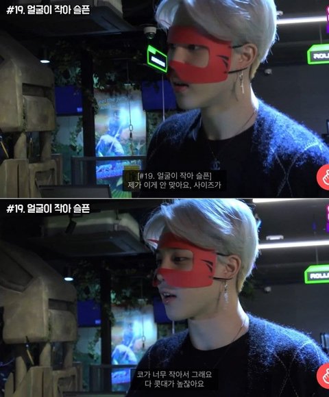 지민 : 제가 이게 안맞아요 사이즈가, 코가 너무 작아서 그래요, 다들 콧대가 높잖아요.