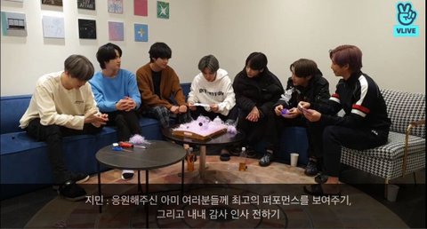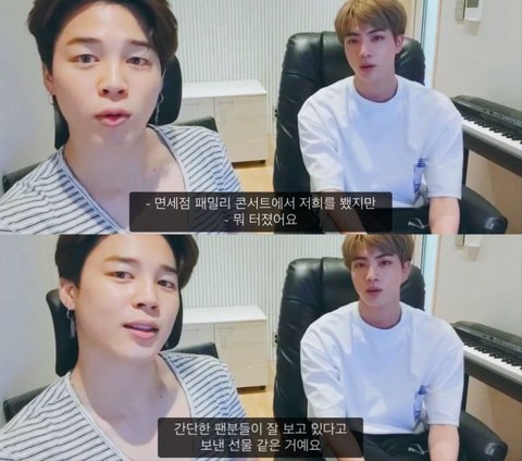 지민 : 팬 분들이 잘 보고 있다고 보낸 선물같은 거예요.