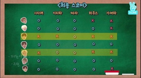 게임 스코어 결과 석진이 1점 지민이 2점 인 상황
