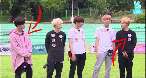 어느 순간 지민이의 스티커 하나가 석진이에게 붙어 있음.