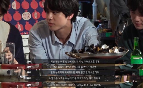 밝게 사는것이 모토이지만 가끔 힘들때도 있다는 속마음을 말했던 석진이