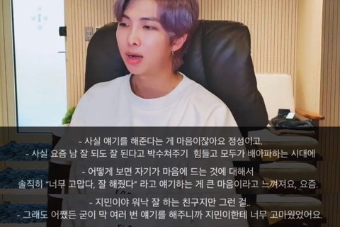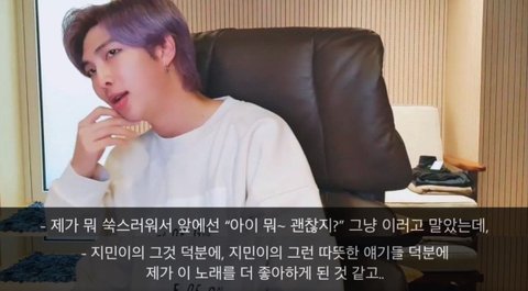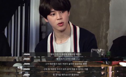 지민 : 근데 그걸 진짜 알았으면 좋겠는게 형이 그런거 때문에 힘들어할 때마다