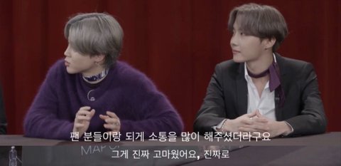 지민 : 이번에 태형씨랑 진씨가 되게 고마웠던게,