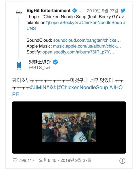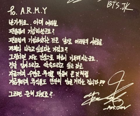 그래서 적어도 팬 분들한테는 따뜻한 말 한마디를 해주고 싶다는 지민이