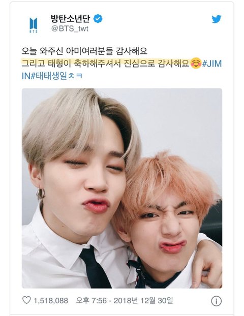 태형 : 지민이는 저에게 둘도 없는 친구예요.