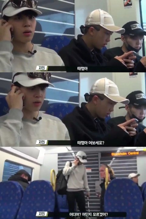여행 중 태형이가 길을 잃은 동안 여섯명이 함께있던 장면을 보고