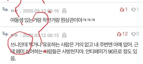 댓글에 게이가 여자 깐다, 게이들이 여혐 심하다 ㅇㅈㄹ하는 애들ㅋㅋㅋㅋㅋㅋㅋㅋㅋ 성별 보니까 다 남자임 큐ㅠㅠㅠㅠㅠㅠㅠ(밑에 사진에서 분홍색 여자 표시 있으면 여자, 없으면 남자임)