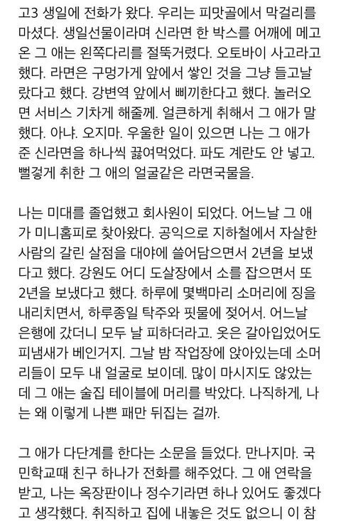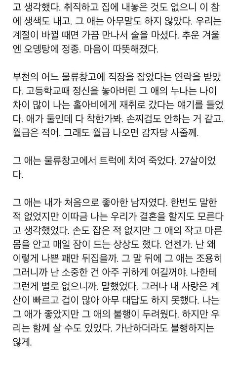 저런 남자와 결혼했는데 후회함. 세상물정 모르고 자랐던 나는 불쌍한 게 사랑인 줄 알았고 그래서 10년간의 반대를 무릅쓰고 결혼했다. 나 좋다고 다가온 착하고 다정한 사람들, 예의 있는 사람들을 다 애송이 취급했는데 지나고 보니 그들이 참 좋은 사람들이었던 거였다. 내가 치기에, 부모에 대한 자존심에 남편을 선택한 거였는데 지금에 와서 속상해도 하소연도 못하고 그냥 산다. 없는 사람, 자기 상처가 큰 사람은 없는게 늘 당연하고 남의 상처는 자기 상처보다 보잘것없는 것이라서 어떤 상황이 되어 내가 몸이나 마음에 아파도 위로도 해주거나 돌봐주지 않는다. 집안 보고 결혼시킨다는 어른들 말 틀린 거 없다. 모두 착하고 다정한 사람 만나길.