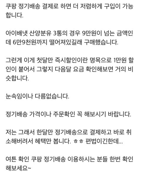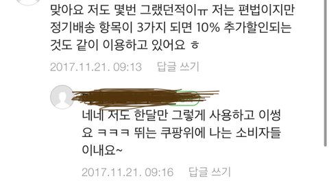 정기배송하면 몇천원에서 몇만원까지 할인해주던데 그거는 정기배송을 꾸준히 하기로 계약하고 쿠팡에서 할인해주는거 아닌가요?