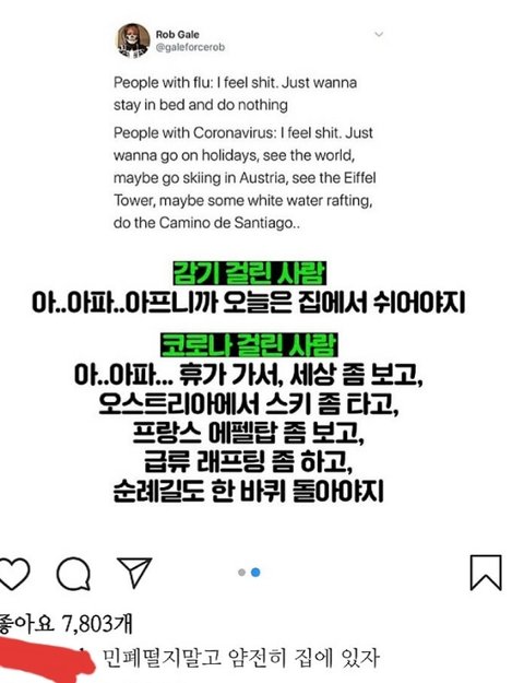 진짜ㅋㅋㅋㅋㅋㅋ공감.... 어제 옆아파트 확진자 한명 나왔는데 증상 발현했는데도 3일동안 진짜 많이 돌아다녔더라^^....