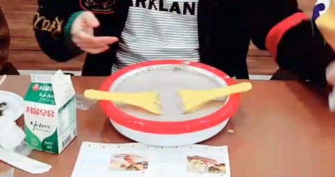 저번에 우유 많이 넣어 실패한거 같다며 우유를 쪼록! 넣고 끝냄