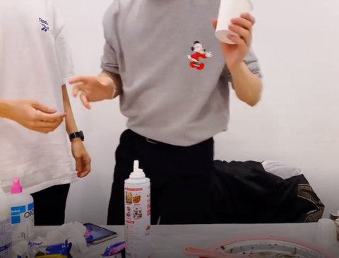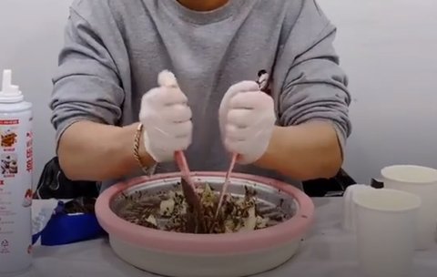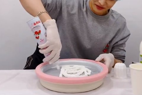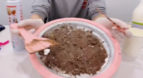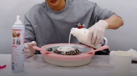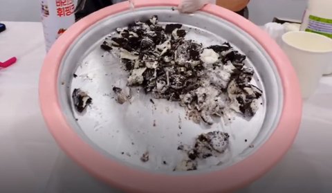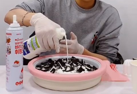 사실 철판 아이스크림은 액체형 휘핑크림을 써야하는데 그냥 완성된 휘핑을 가져온거