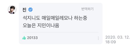 석지니 아직도 어려지는 중 ㅎㅎㅎㅎㅎ 평소에 멤버 카톡에도 저렇게 이야기 할거 아냐 ㅎㅎㅎ 애들 반응이 상상이 된다