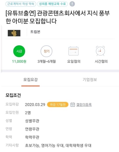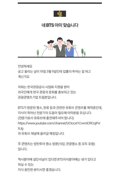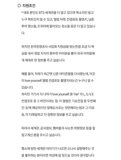 알바몬에 올라온 방탄소년단 팬 모집 공고