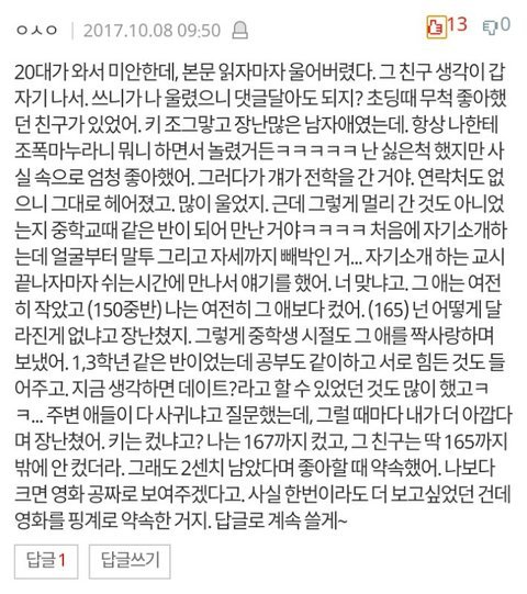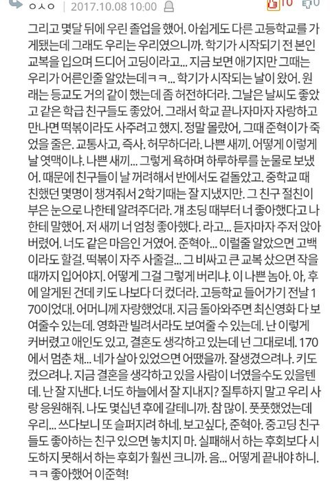 제일 안타깝고 아련한 썰이 아닐까 싶음...