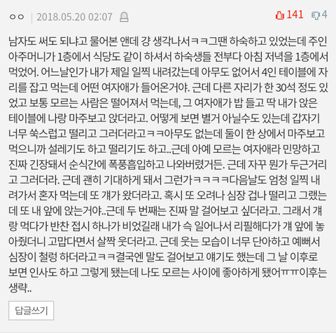 개인적으로 학생의 풋풋함이 가장 잘 느껴지는 썰이 아닐까... 하고 짐작해 봄.