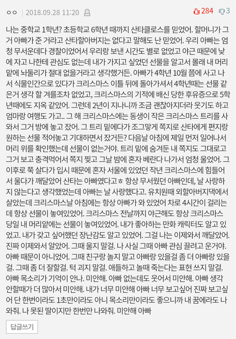 가장 슬픈 썰이 아닐까 싶음... 마지막 문단에선 울음 바다 줄줄ㅠㅠ 슬프니 각오들하고 봐랑...