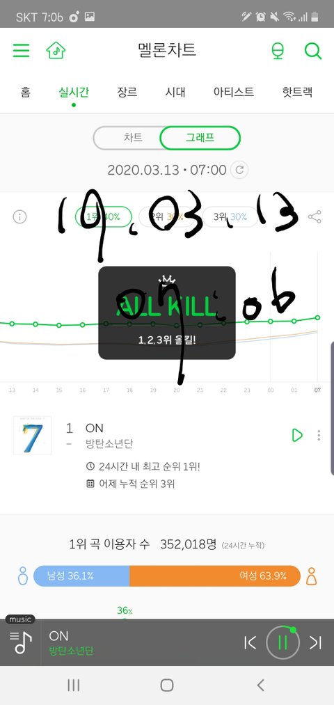 낮엔 대중들이 많이 듣는게 어쩔수없이 치고올라온다지만