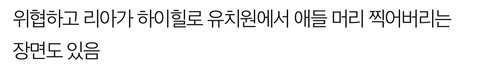 위협하고 리아가 하이힐로 영화관, 음식점에서 애들 머리 찍어버리는 장면도 있음