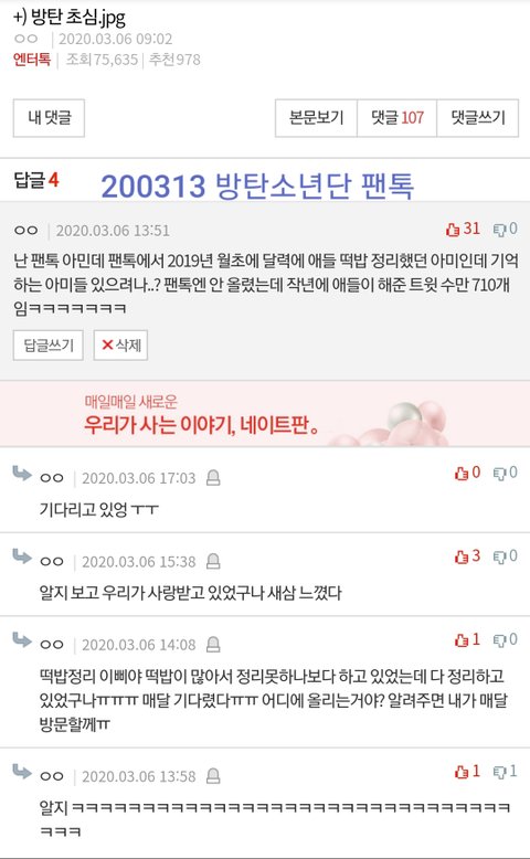 저번에 엔터에서 탄이들이 아미들이랑 소통 안 한다, 초심 잃었다면서 어그로 끌릴 때 반박 겸 댓을 달았던 적이 있었는데 몇몇 이삐들이 떡밥 정리를 다시 보고 싶어 하길래 한번 써보려 해!