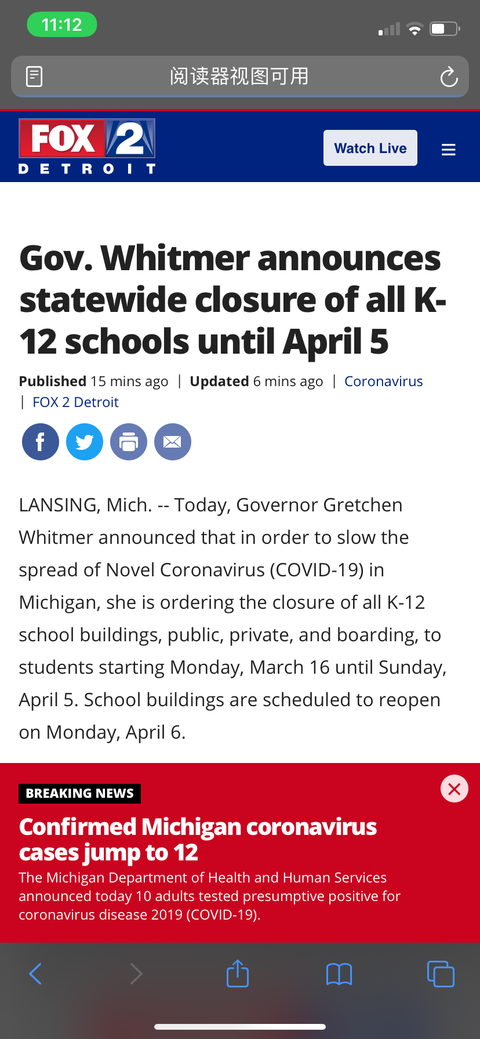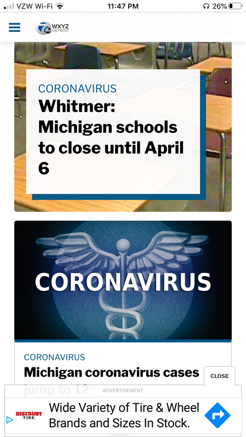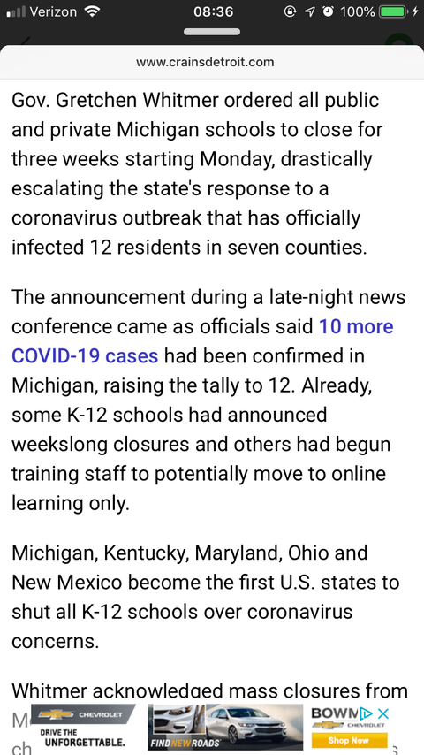 그리고 수요일 오후에 우리 근처 (30분 거리) 학교에 다니ㅡㄴ 학생의 부모님이 또 다른 감염자라고 확신이 되어서 그 학교 목,금 학교 닫는다고 나옴 그 학생은 지금 테스트 중이래