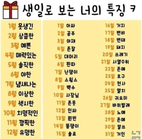 생일로 보는 특징도...