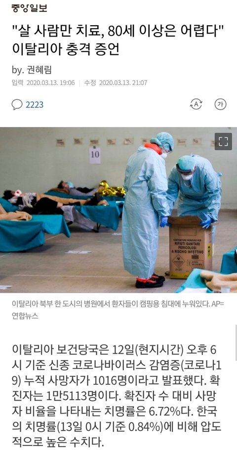 지금같은 비정상적인 상황에서 검사와 치료에는 우선순위와 선후경중이 나눠질 수밖에 없습니다. 우리나라가 다른 나라에 비해서는 검진키트가 넉넉하다고 해도 원하는 사람을 무조건 다 하기엔 키트 인력 시간 다 부족합니다. 직원들이 억하심정이 있는 것도 아닌데, 해주기 싫어 안 해주는 게 아니지 않습니까. 지금은 의료진과 보건소 등 질본에 최대한 협조해서 말 듣는 게 최선입니다.