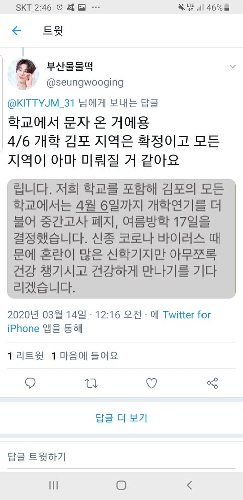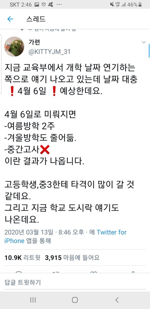 개학연기 교사 트위터
