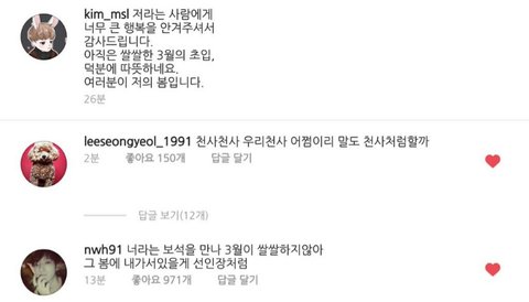 넘 행복하그든여..? 복작복작 자기들끼리 노는거 보기만해도 넘 행복하니까 빨리 다 전역해서 댓글도 더 많이 달아주구 단독 리얼리티도 해주세요