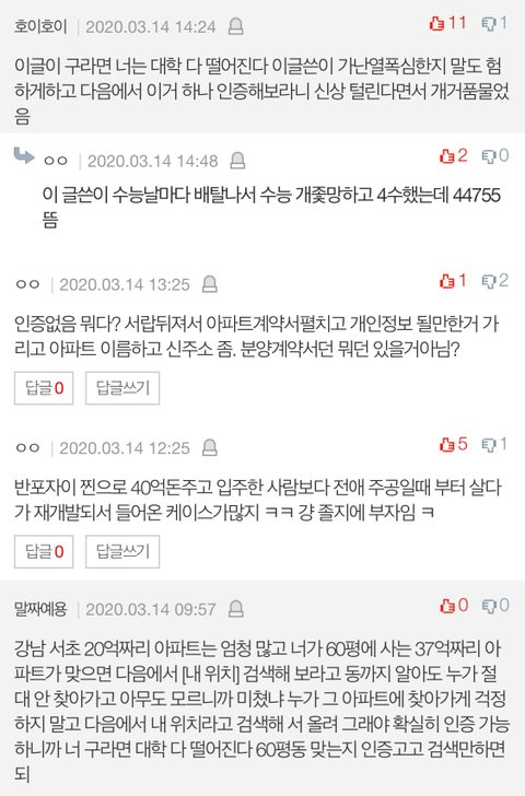 강남 산다는 이유로 나한테 달린 댓글들