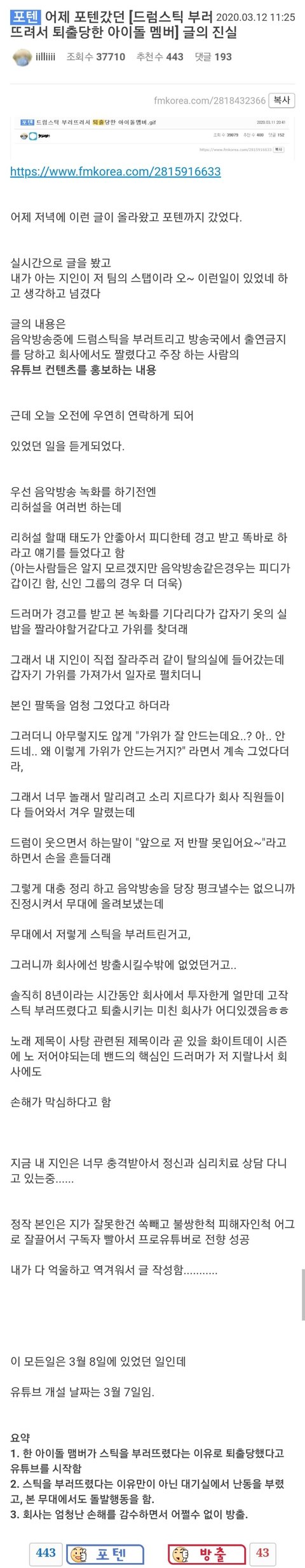 드럼스틱 부숴서 잘랐다는 게 이해가 안갔는데