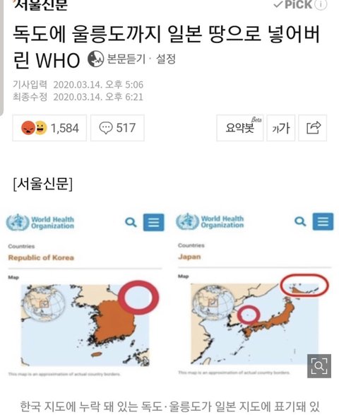 WHO가 독도로 모자라 울릉도까지 일본 땅으로 표기함 ㅋㅋㅋ 조카 어이없어서 말이 안 나오네