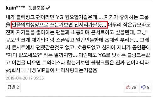 블랙핑크와 관련없는 모든 기사에 블랙핑크를 언급하며 깎아내리고 선동한다는것은