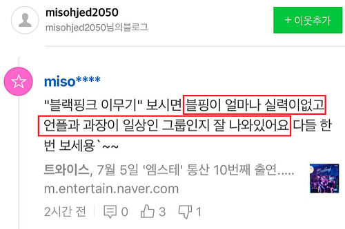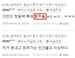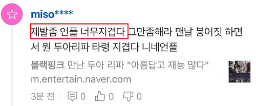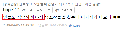 블랙핑크의 기사가 뜨면 제일 먼저 댓글을 독점하고
