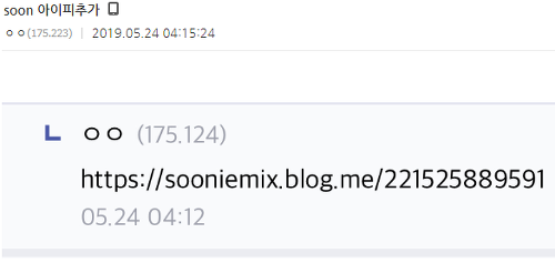 날조글과 같은 내용으로 soon의 블로그 링크를 올림.
