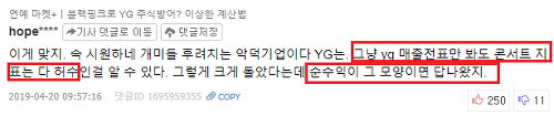24. YG가 2018년에 엔터부문 40억 적자라는 날조와 반박글