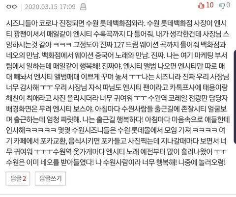 톡선에서본 롯.데 백화점 수원