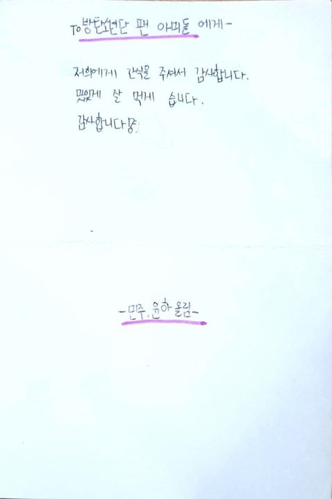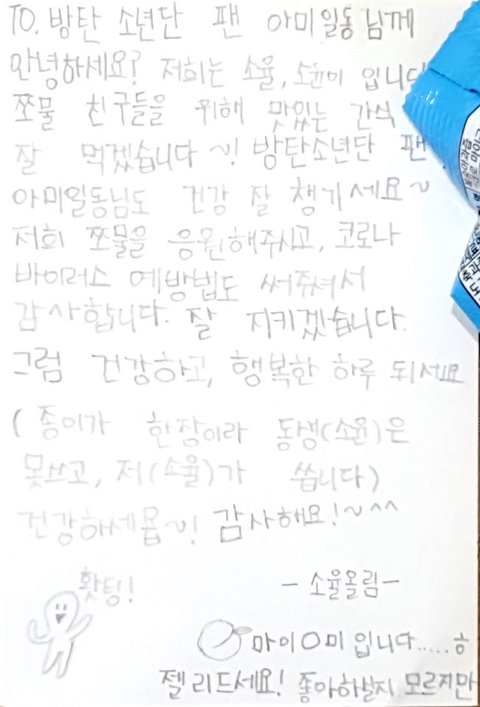 애들이랑 오랫동안 인연 이어온 아이들이라 십시일반 모아서 기부했었눈대 또 이뿌게 감사 인사 전한거 봐 ㅠㅠㅠ 인류애 살아났다 ㅠㅠㅠ + 이런 좋은 일들에도 독려연합 괴롭히는 애들 있었더라 ^^