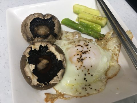 가끔씩 귀찮을때 버터녹인 팬에 계란후라이 + 버섯 + 아스파라거스 구워서 먹어요