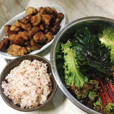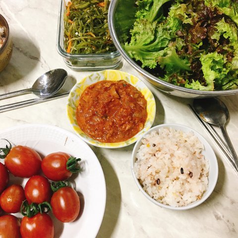 그냥 참치쌈장에 상추 싸먹기! 양파가 많이 들어가 달콤해서 밥 잔뜩 먹었어요 ㅠ