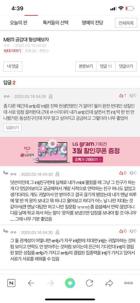 댓글 많은 톡