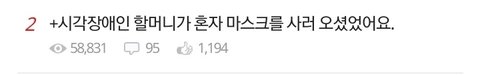 앞에분들이 다른 가족것까지 사시면 저도 못사는 상태였는데 다행히 제 앞분이 할머니못사시면 본인 자녀분 마스크 포기하고 살수있게 해드린다고 하셔서 얼마나 마음이 놓였는지 몰라요.