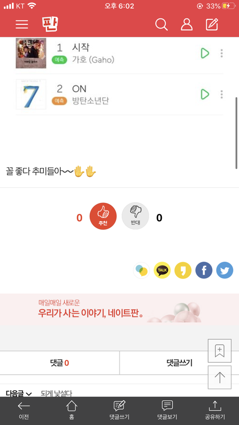 밑 풉 글,댓여기서봐+