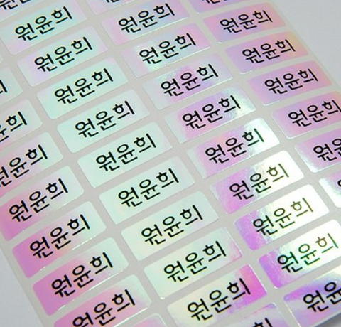 네임스티커 투명으로 할까 핑크홀로그램으로 할까