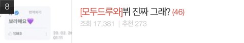다 알겠은까 제목 어그로 좀 작작 쳐 이게 몇 번이냐 알겠다고 ㅆㅂ 여서 아무도 니네 뷔 신경 안 씀 까는 것들은 줫나 악질 몇 명이 돌려가며 쓰는 건데 왜케 난리 쳐 느그 뷔가 뭘 했던 인성이 나쁘던 좋던 간에 머글들은 아무도 신경 안 쓴다고 어그로 글도 한 둘이여야지 이럴거면 니네 팬톡 가라